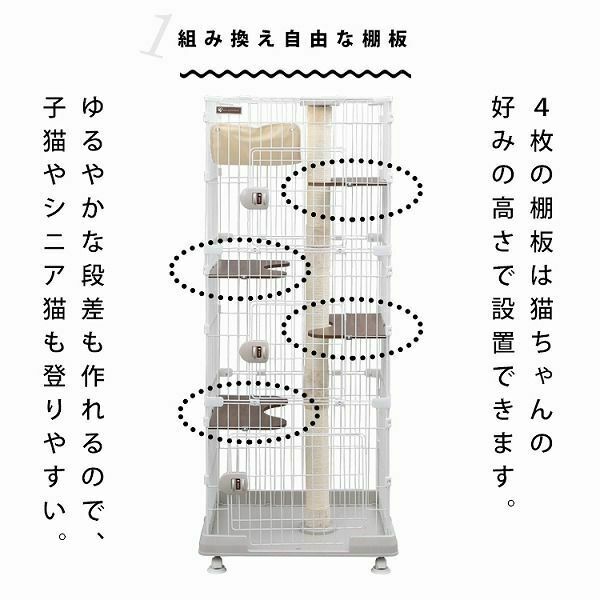 在貓的喜好高度安裝4層台階的擱板,讓所有貓咪容易攀爬
