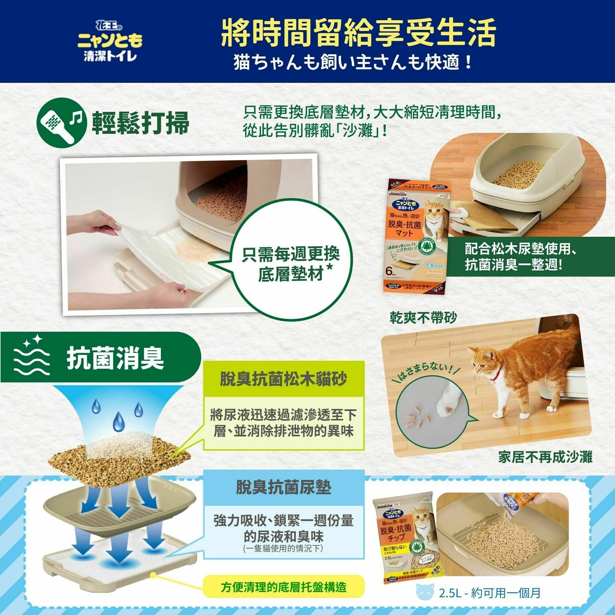 +花王大粒松木貓砂+除臭抗菌尿墊