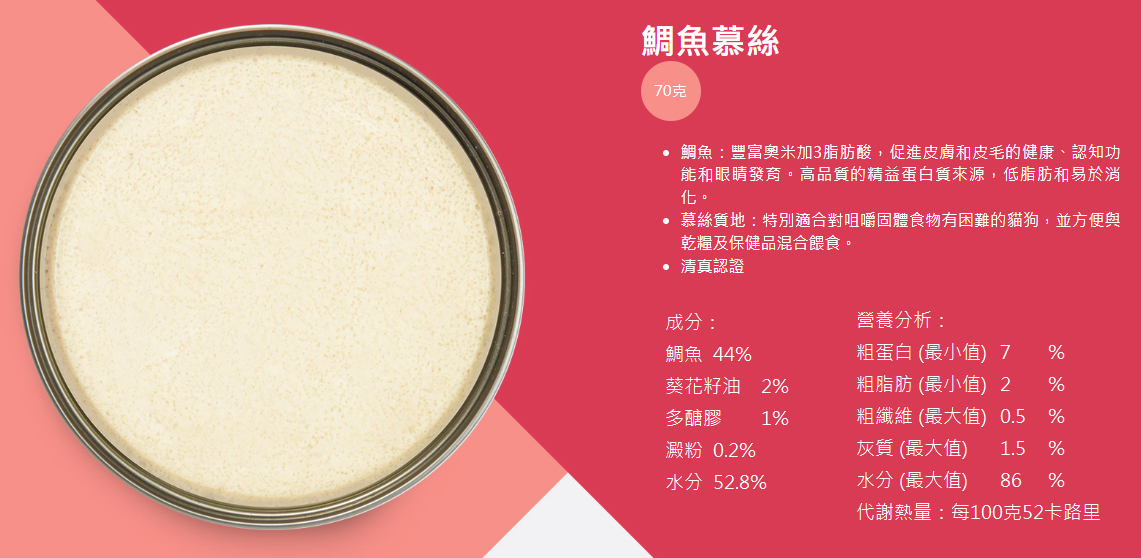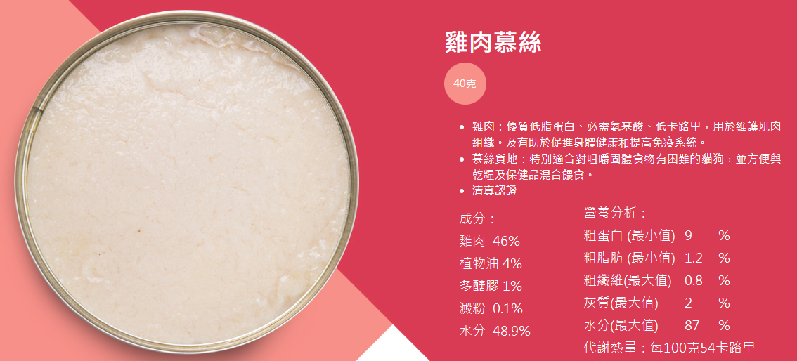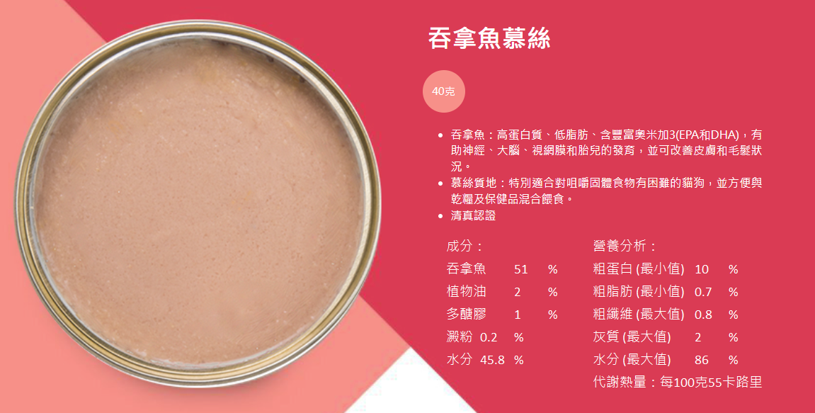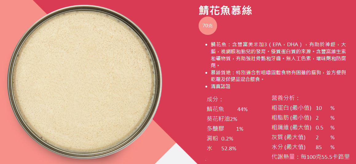 Kakato產品得到「優質正印」認可,證明本公司產品已通過STC嚴格測試,消費者可安心購買。「Kakato」是新西蘭毛利語中的 “美味” 的意思。 Kakato 罐頭由最優質,天然和人類食用級成分製成,不含任何添加劑或味精。這三個元素使 Kakato 從競爭對手中脫穎而出,最受寵物及其主人的喜愛。罐頭採用厚切肉粒或肉絲,海鮮,魚類製成,並有多種口味。食品是泰國製造,而泰國是出口高品質的肉類和海鮮而聞名。罐頭可用作貓和狗的輔助食糧。 他們的雞肉/吞拿魚慕斯特別適合幼犬/幼貓以及食慾不佳的貓狗。