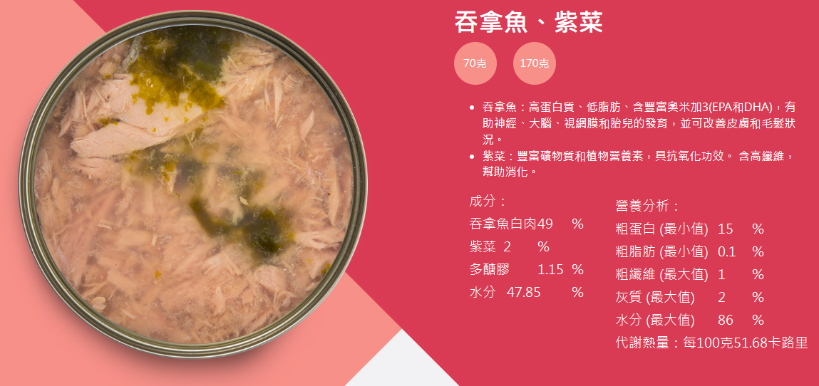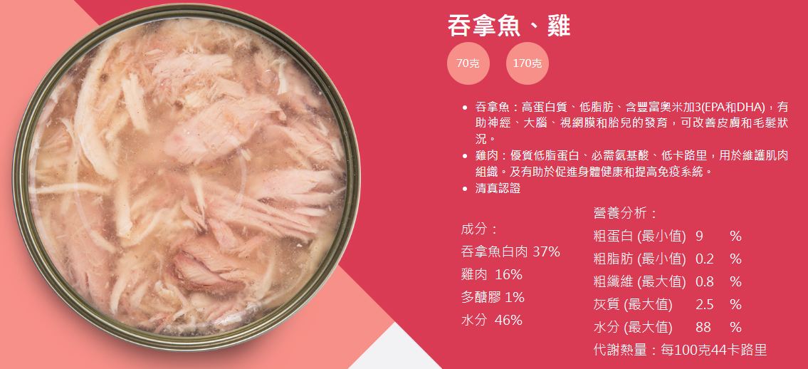 Kakato產品得到「優質正印」認可,證明本公司產品已通過STC嚴格測試,消費者可安心購買。「Kakato」是新西蘭毛利語中的 “美味” 的意思。 Kakato 罐頭由最優質,天然和人類食用級成分製成,不含任何添加劑或味精。這三個元素使 Kakato 從競爭對手中脫穎而出,最受寵物及其主人的喜愛。罐頭採用厚切肉粒或肉絲,海鮮,魚類製成,並有多種口味。食品是泰國製造,而泰國是出口高品質的肉類和海鮮而聞名。罐頭可用作貓和狗的輔助食糧。 他們的雞肉/吞拿魚慕斯特別適合幼犬/幼貓以及食慾不佳的貓狗。
