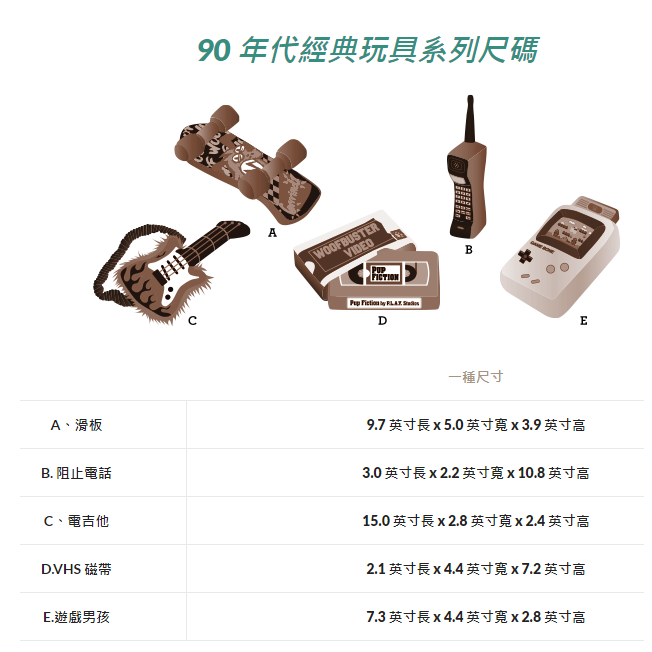 就好像我們會讓您錯過 PLAY 的 90 年代經典毛絨玩具系列!讓它成為一個瘋狂的夜晚,播放您最喜歡的電影《小狗小說》。然後,打電話給你的好朋友,用你的手機撥打 411,同時在你皺巴巴的 Game Bone 上玩《Super Momo & Pals》。趁著夜色還早,跳上你的滑板,去參加家庭聚會,聽一些飛吉他即興演奏,然後跳起來吧!