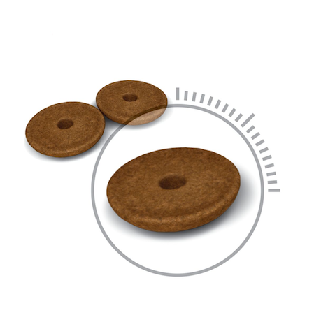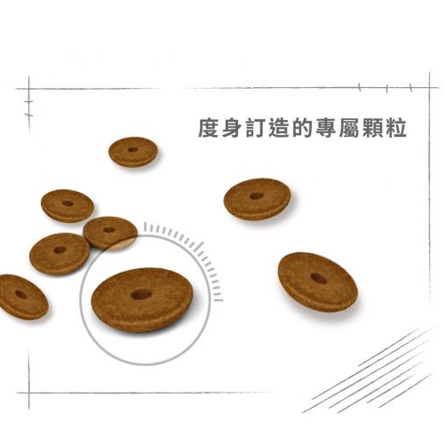 促進咀嚼及減緩進食速度:消化道健康成貓配方的環形食物顆粒設計有助減慢貓在進食時的速度以及讓牠們需徹底咀嚼食物,有助消化