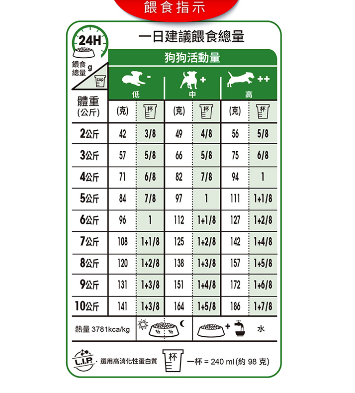成年犬的全價飼料 - 適用於主要生活在室內的小型犬(成年體重不超過 10 公斤) - 10 個月以上。消化系統健康和糞便質量,得益於高度易消化的 LIP、適當的纖維含量和非常優質的碳水化合物來源,有助於支持消化系統健康並減少糞便氣味和體積。該配方含有有助於支持健康皮膚和皮毛的營養素。富含 EPA-DHA。理想的身體狀況-由於卡路里含量經過調整,可滿足主要生活在室內的小型犬減少的能量需求,因此有助於保持理想的身體狀況。該配方含有左旋肉鹼。
