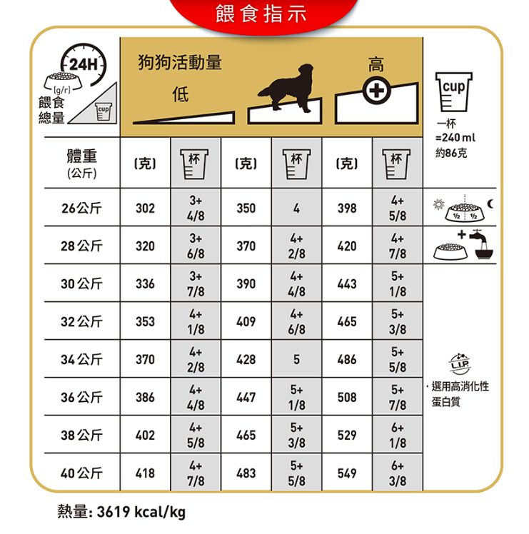 ROYAL CANIN® 金毛尋回成犬配方適用於15個月以上的金毛尋回犬,當中含有你的成犬所需要的全部營養。ROYAL CANIN® 金毛尋回成犬配方含有包括EPA和DHA在內的Omega-3脂肪酸以及琉璃苣油,這些營養成分都有助維持皮膚的屏障作用,續而讓成犬的毛髮看起來變得更健康。ROYAL CANIN® 金毛尋回成犬配方中還結合了脂肪酸及豐富的牛磺酸,讓成犬維持良好的心臟功能。ROYAL CANIN® 金毛尋回成犬配方通過調整當中的卡路里含量,讓金毛尋回犬維持在理想的體重狀態。此外,ROYAL CANIN® 金毛尋回成犬配方的食物顆粒是專門為金毛尋回犬而度身訂制的,顆粒的形狀和大小都經過特