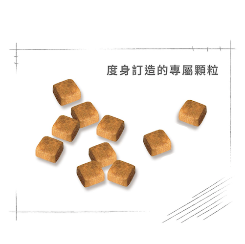 矩形小顆粒,特別為波斯貓幼貓設計,口感柔軟,方便幼貓取食及咀嚼